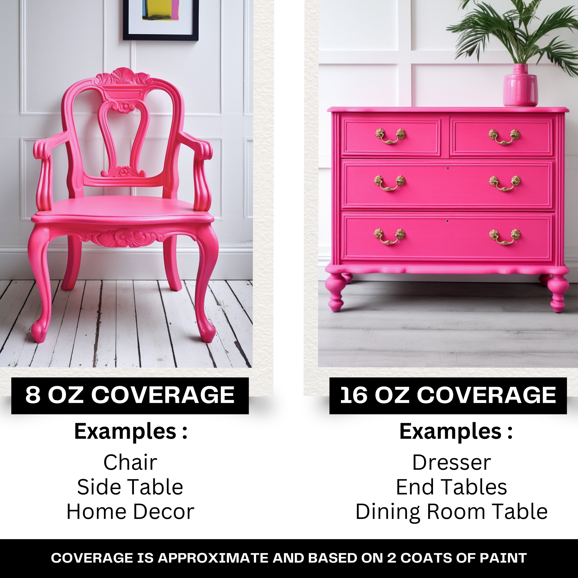 Our 8 oz container is enough for a small table or chair and our 16 oz is enough for a large dresser - Our paint is easy to use and appropriate for furniture, canvas art, home decor and more